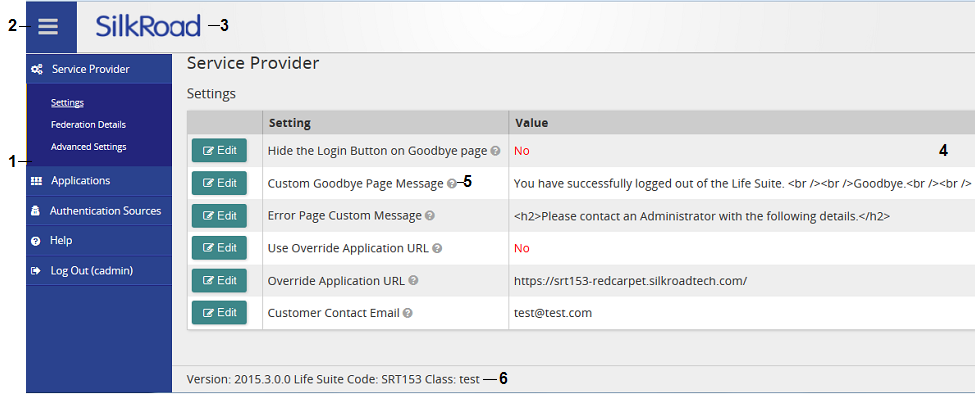 Shows Authentication version, LifeSuiteCode and class. Helps SilkRoad Support identify customer and version when providing technical assistance.