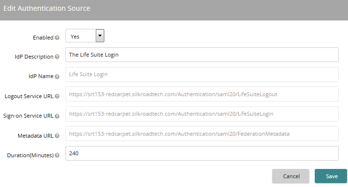 Use this page to make changes to the Life Suite Login authentication source. Not every setting on this page is editable. Settings that are grayed out are not editable.