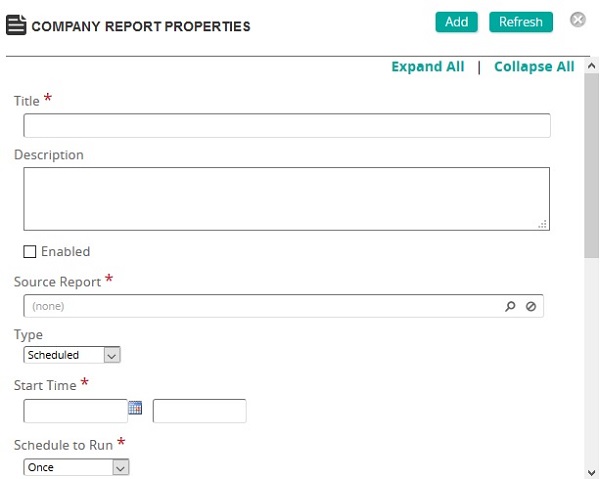 On the Company Reports Properties page: