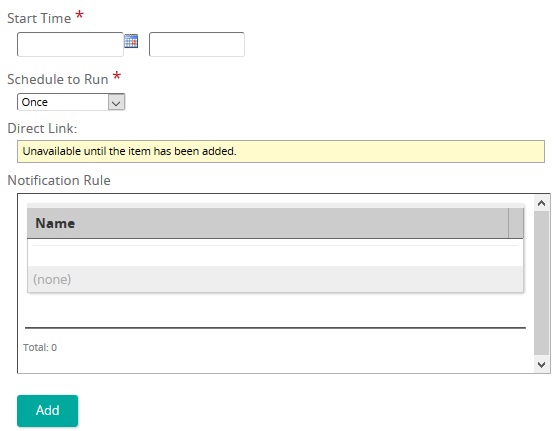 - Under Notification Rule, click the Add button and select the notification that is sent to recipients when the report is generated.