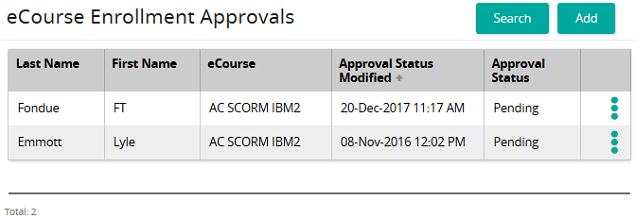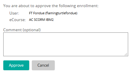 If eCourses have been set up to require approval before a student can launch a course, administrators can go to Learning > Approve > eCourses to approve these requests.