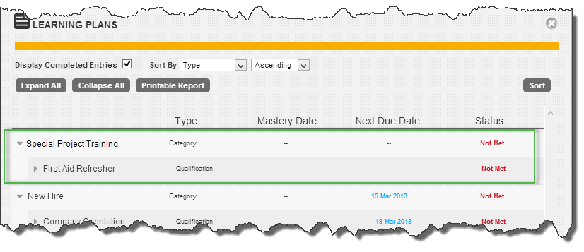 The training associated with this group appears on the Learning Plans page.